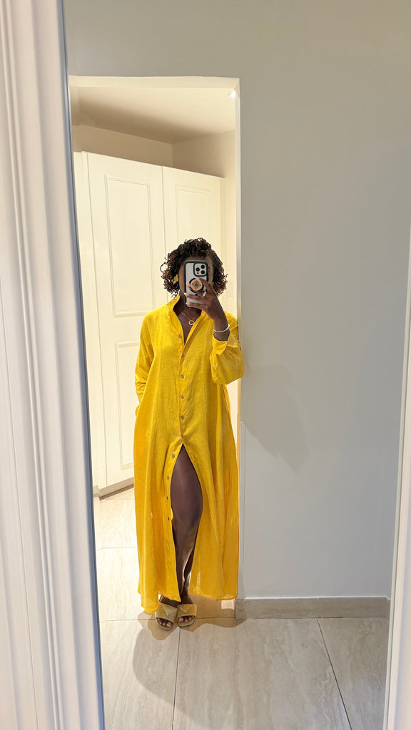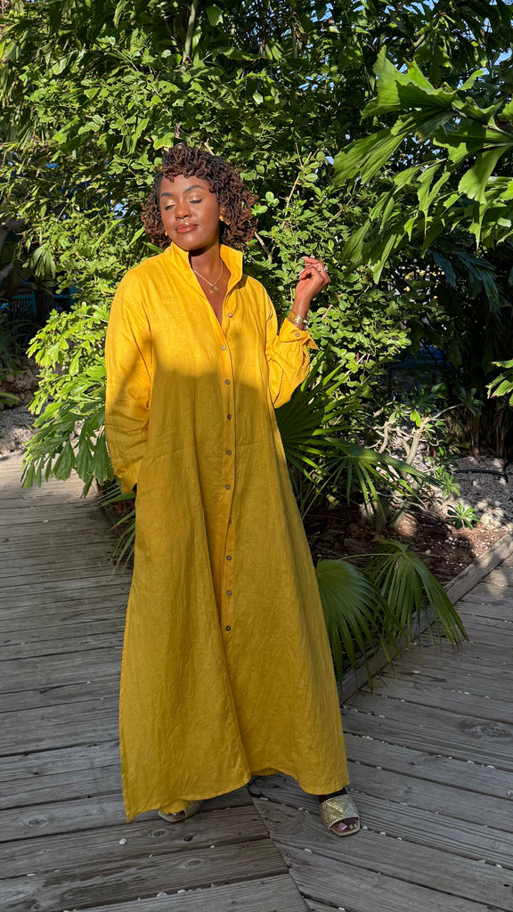 The Elevated 100% Linen Shirtdress - Sunflower