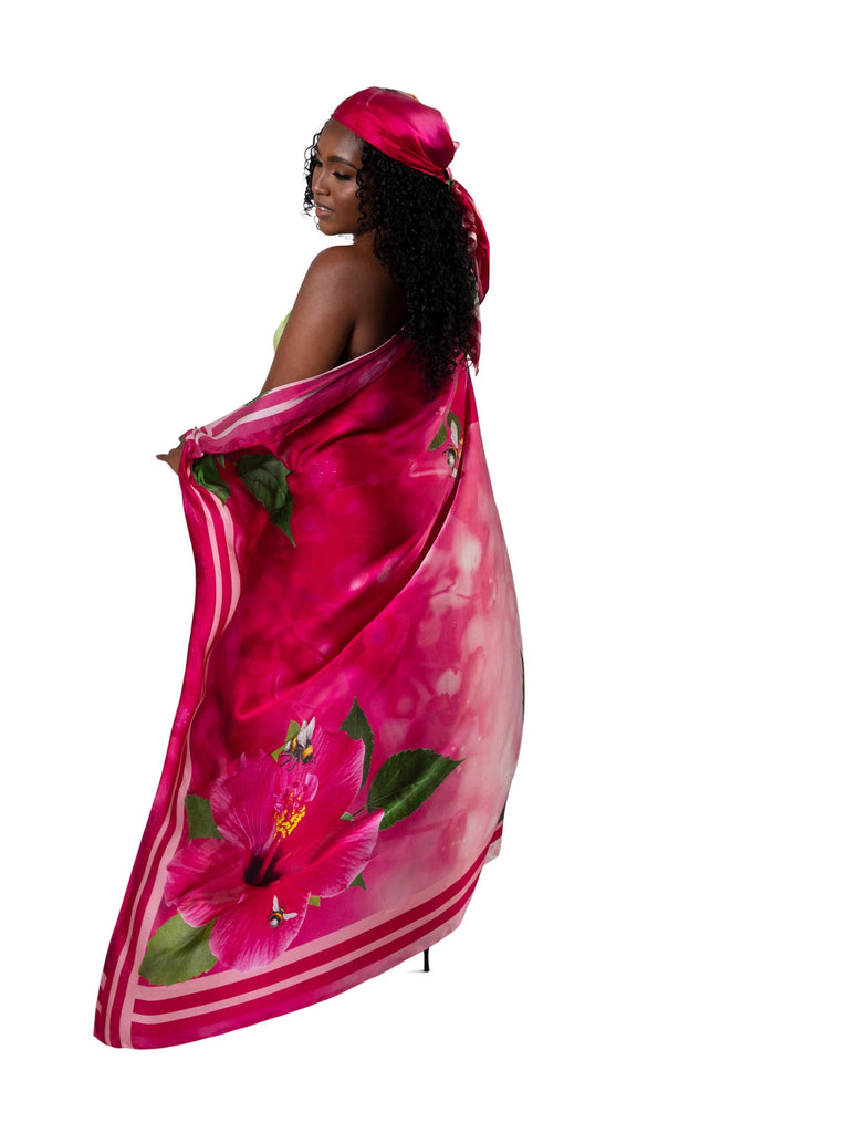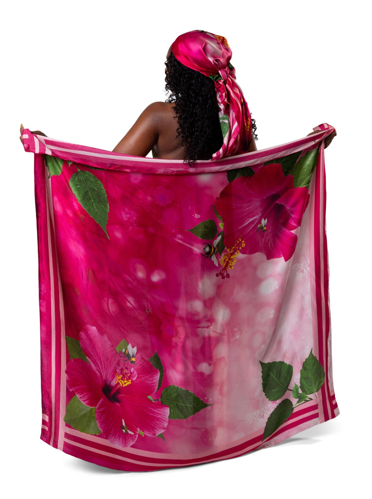 100% Mulberry Silk Scarf - Hibiscus