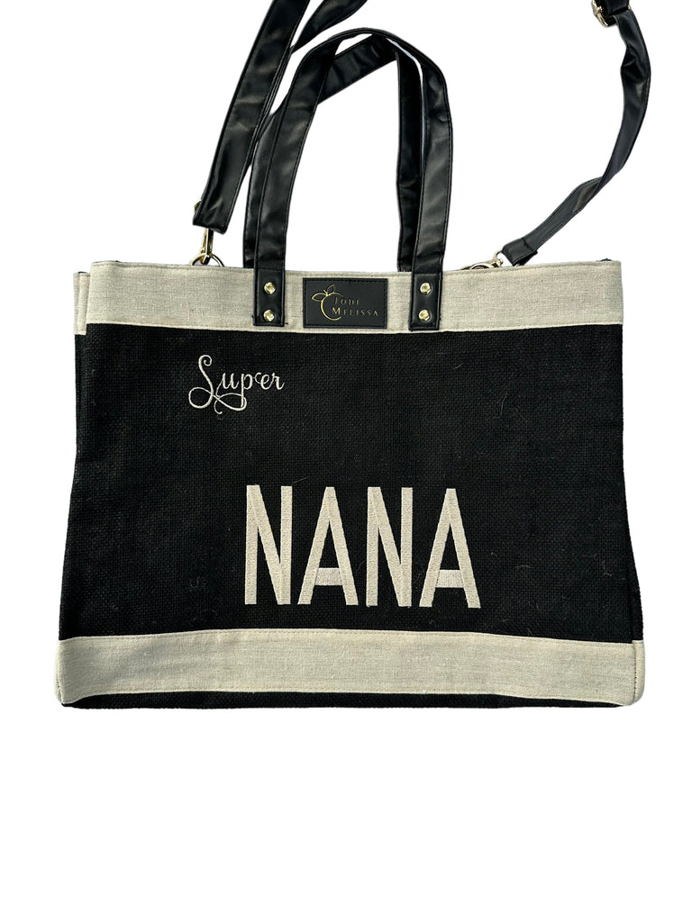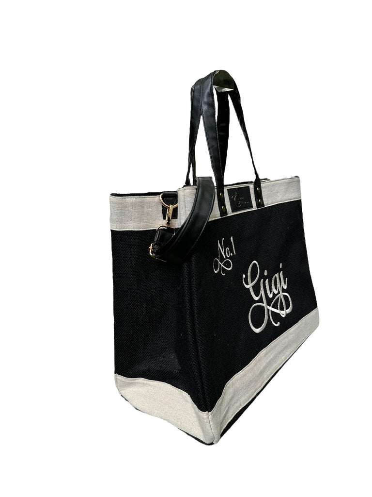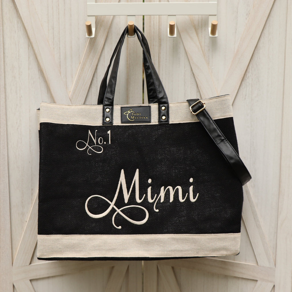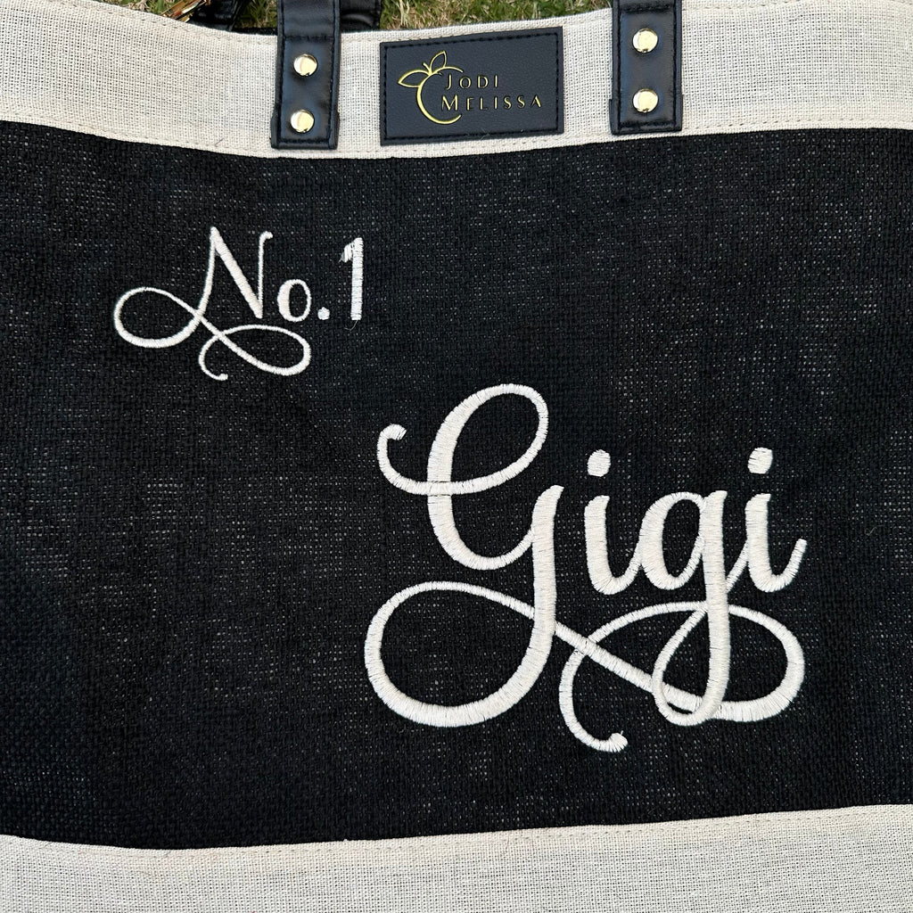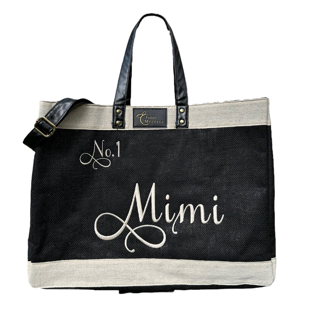 Embroidered Medium Jo Tote - Black
