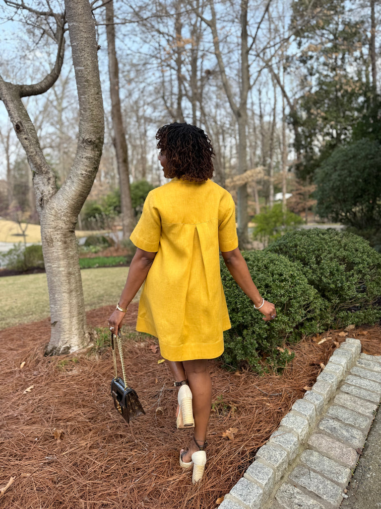 It doesn't get cuter than this. This adorable dress can take you from beach stroll to dinner in the city. As with all our linen pieces, this linen is of the highest grade which will last you for a lifetime of memories. Completed with pockets, chic wooden buttons, plus the ability to pop the collar or wear it down, we just can't get enough of our cutesy dress. Also available in navy.